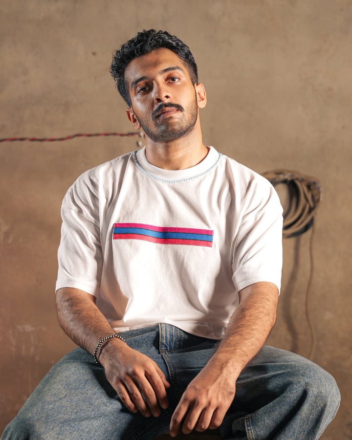 Technique: Handwoven cotton twill tape on the front and hand-stitched detail on the collar