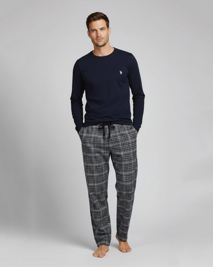 Soft, breathable pajama set with fleece pants and a relaxed fit—perfect for lounging or everyday comfort. tag-free for all-day comfort