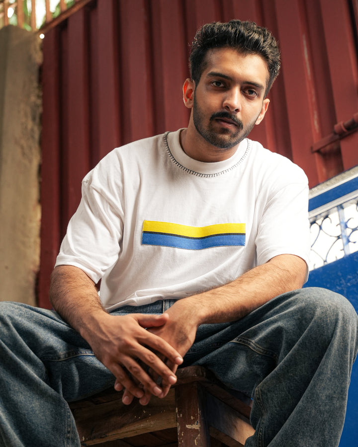 Technique: Handwoven cotton twill tape on the front and hand-stitched detail on the collar